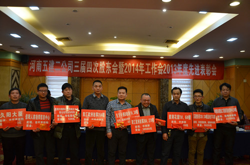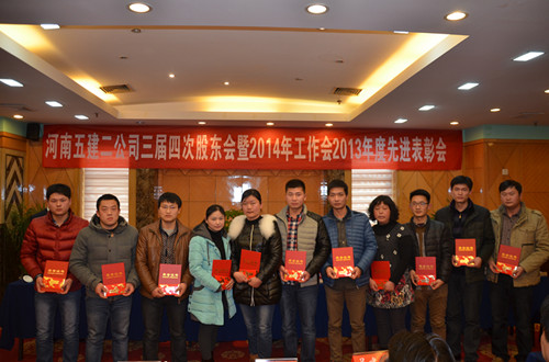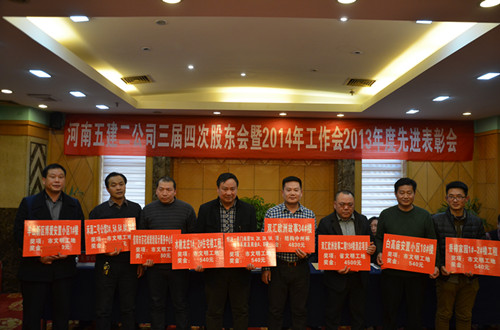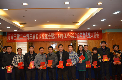 随后,财务总监郑慧和副总经理吴建功分别宣读了《关于对2013年度公司先进单位和个人进行表彰的决定》和对2013年度科技创新、工程质量和安全管理目标实现的奖励文件,对先进项目部(单位)、经济贡献人员、优秀管理人员、质量安全管理标兵和先进个人进行表彰,并颁发了奖金和证书。同时,希望评选出的先进单位和个人戒骄戒躁、再接再厉,在各项工作中认真履行职责,起模范带头作用,为全面完成公司2014年各项任务和目标而努力。