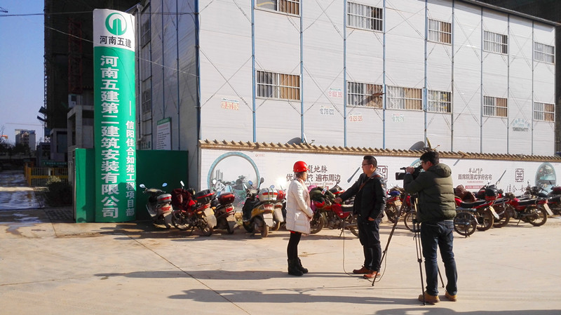 信阳市大气办于12月25日邀请信阳市电视台,在公司佳合如苑项目部对公司关于扬尘治理采取的措施及成效,进行了专项采访报道,公司副总工、工程部部长吴善艳接受了此次采访。