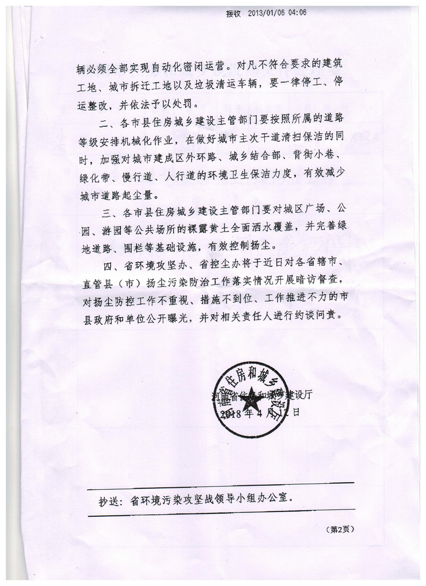 现将《河南省住房和城乡建设厅关于进一步做好扬尘污染防治工作的紧急通知》(豫建明电[2018]17号)转发给你们,请按照通知要求,认真贯彻执行。