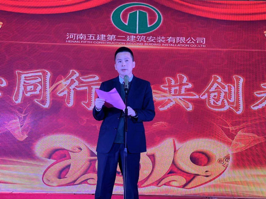 12月29日下午,中乐百花酒店三楼百花宴会厅内张灯结彩、喜气洋洋,河南五建二公司以“同心同行 共创未来”为主题的2019年迎新年联欢会在此隆重举行。公司董事会、总经理班子成员与全体员工欢聚一堂,共同庆贺硕果累累的2018、展望充满希望的2019。