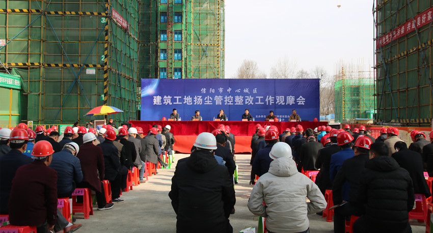 信阳市中心城区建筑工地扬尘管控整改工作观摩会在我公司泰阳辰项目召开
