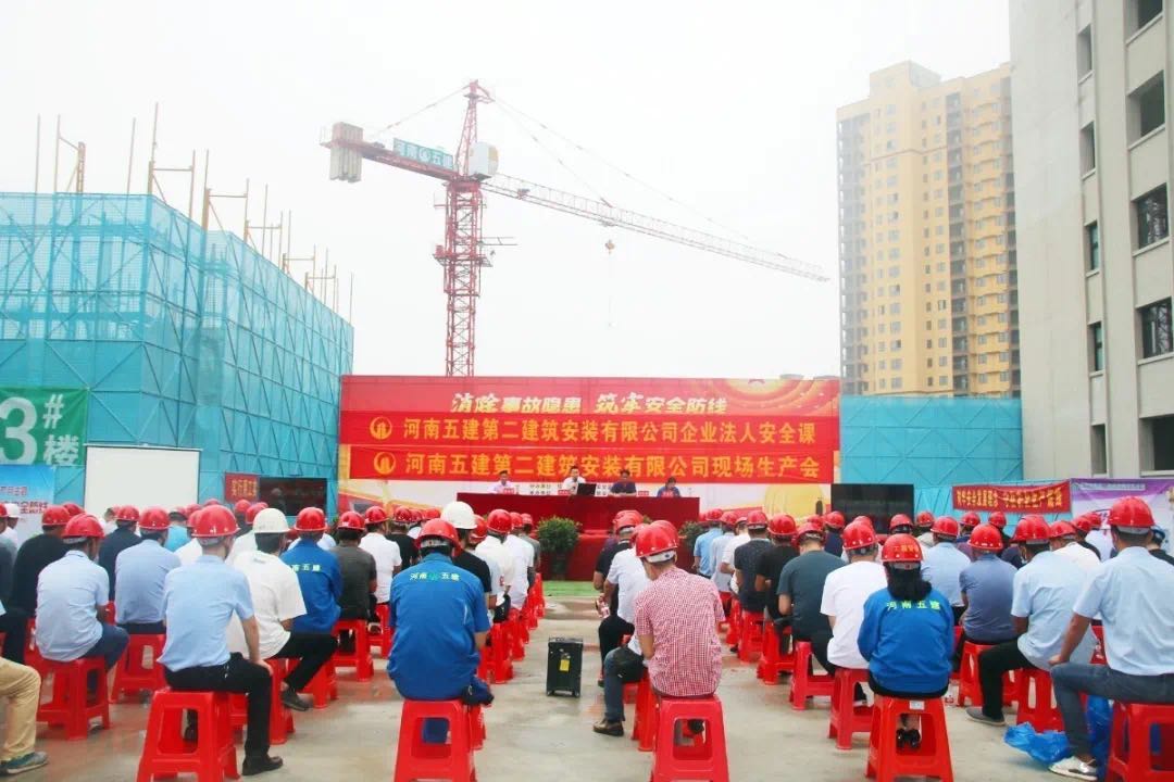 6月10日上午, 公司2020年“安全生产月”系列活动在佳和熙岸项目继续进行,当天的活动分为企业法人安全课和安全生产会两个议程,由副总工程师、工程部部长吴善艳主持。公司董事会、经理班子成员、各部门、二级机构负责人及各项目部项目经理、技术负责人、专职安全管理人员等共一百余人参加了活动。