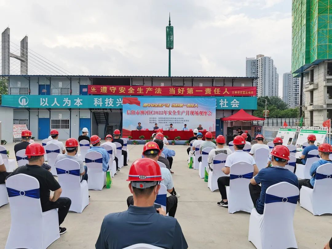 6月22日,信阳市浉河区2022年“安全生产月”现场观摩会在公司第七项目部承建的信阳市浉河区城市有机更新安置区三里店片区建设项目顺利举行,浉河区住建局党组成员、副局长熊国利、监管股股长秦宏伟、安监站党组书记马俊、站长朱伟以及辖区内建筑施工企业安全负责人、在建项目经理、项目安全负责人参加会议。公司副总经理吴建功出席活动并讲话。