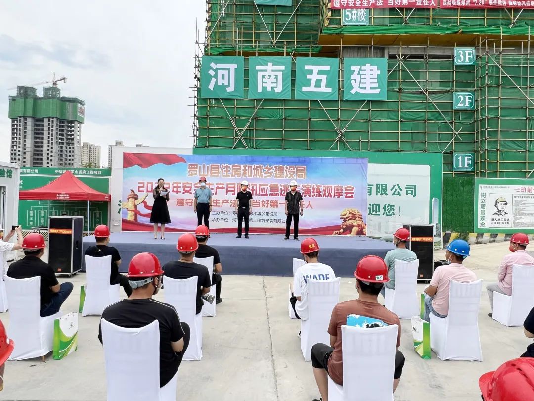 6月26日,罗山县住建系统2022年“安全生产月防”汛应急逃生演练观摩会在公司第三项目部承建的罗山中梁首府项目顺利举办。罗山县住房和城乡建设局副局长杨长进、建筑工程安全指导站站长陈军、公司副总经理吴建功以及罗山县建筑施工企业安全负责人、在建项目经理、项目安全负责人参加活动。